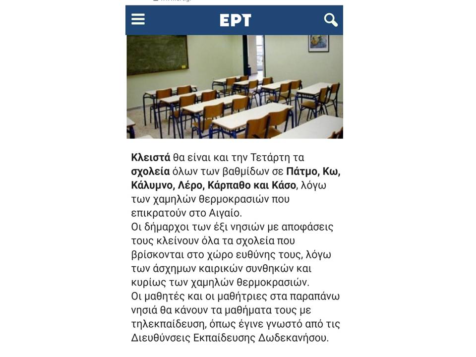 Σύμφωνα με το ρεπορτάζ της ΕΡΤ τα μαθήματα θα πραγματοποιηθούν μέσω τηλεκπαίδευσης