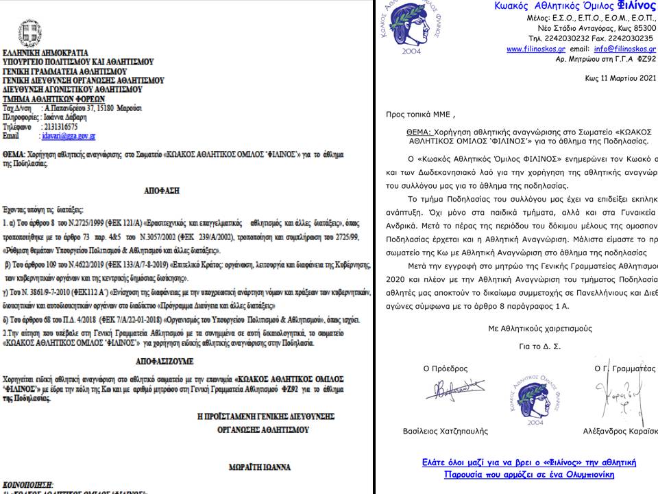ΑΘΛΗΤΙΚΑ Αναγνώριση του αθλητικού σωματείου Φιλίνος της Κω 12/03/2021 13:2321 SHARE Αναγνώριση του αθλητικού σωματείου Φιλίνος της Κω…