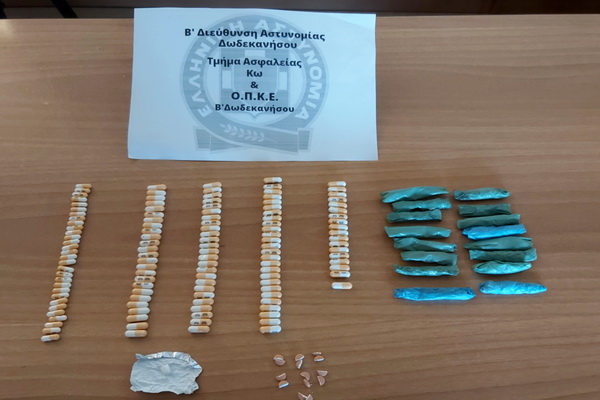 β) από αστυνομικούς Τμήματος Ασφαλείας Κω και της Ο.Π.Κ.Ε., δυο αλλοδαποί ηλικίας 25 και 33 ετών, γιατί έπειτα από έρευνα που έγινε σε χώρο όπου κρατούνται βρέθηκαν επιμελώς κρυμμένα και κατασχέθηκαν -131,5- φαρμακευτικά δισκία άγνωστης χημικής σύνθεσης, καθώς και -16- μικροσυσκευασίες που περιείχαν -19- γραμμ. ακατέργαστης.
