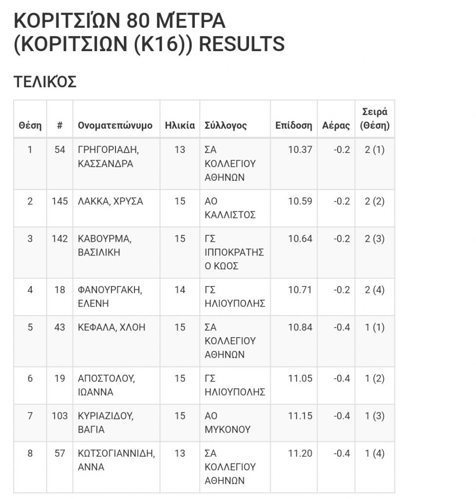 Η Ηλιάνα Χστζηπαναγιωτη εκπροσώπησε την ΑΣ ΣΧΟΛΗ ΜΩΡΑΪΤΗ και η Βασιλική Καβουρμα τον ΓΣ ΙΠΠΟΚΡΆΤΗΣ Ο ΚΩΟΣ.