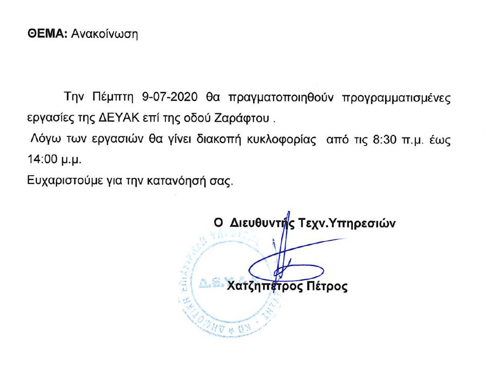 ΤΟΠΙΚΑ ΝΕΑ Διακοπή της κυκλοφορίας λόγω εργασιών της ΔΕΥΑΚ σε κεντρική οδό [Αναλυτικά] 08/07/2020 23:530 SHARE …