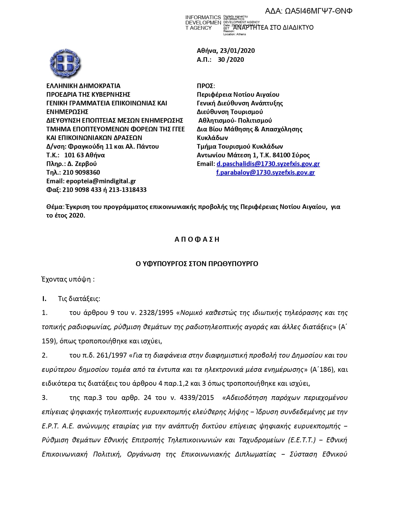 Ν.Μυλωνάς: 4.066.000 ευρώ η διαφημιστική δαπάνη της Περιφέρειας Ν.Αιγαίου - Θα αναμένουμε διευκρινήσεις... [ΦΩΤΟ]