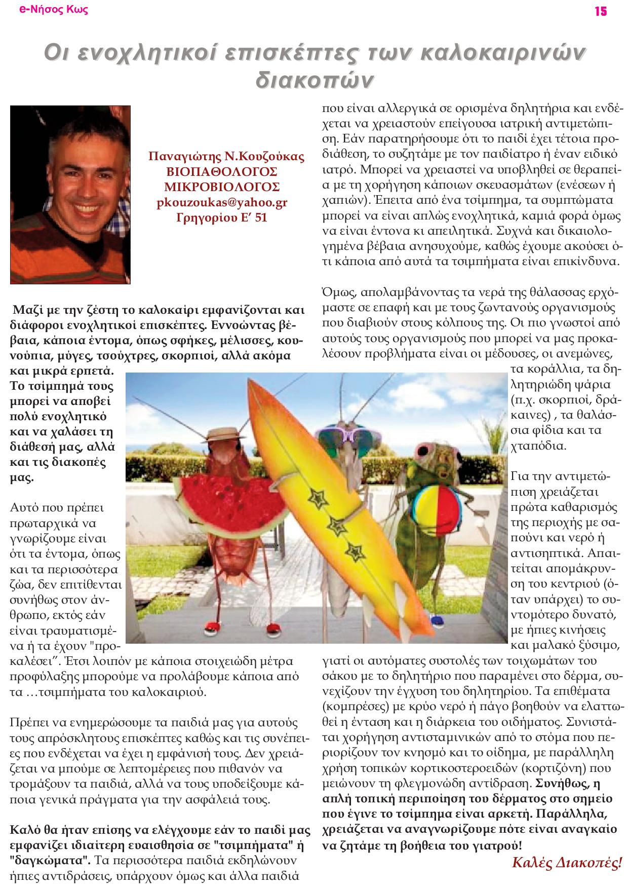 ΥΓΕΙΑ Οι ενοχλητικοί επισκέπτες των καλοκαιρινών διακοπών 20/07/2018 14:153 SHARE πηγή: e-Νήσος Κως Τ46