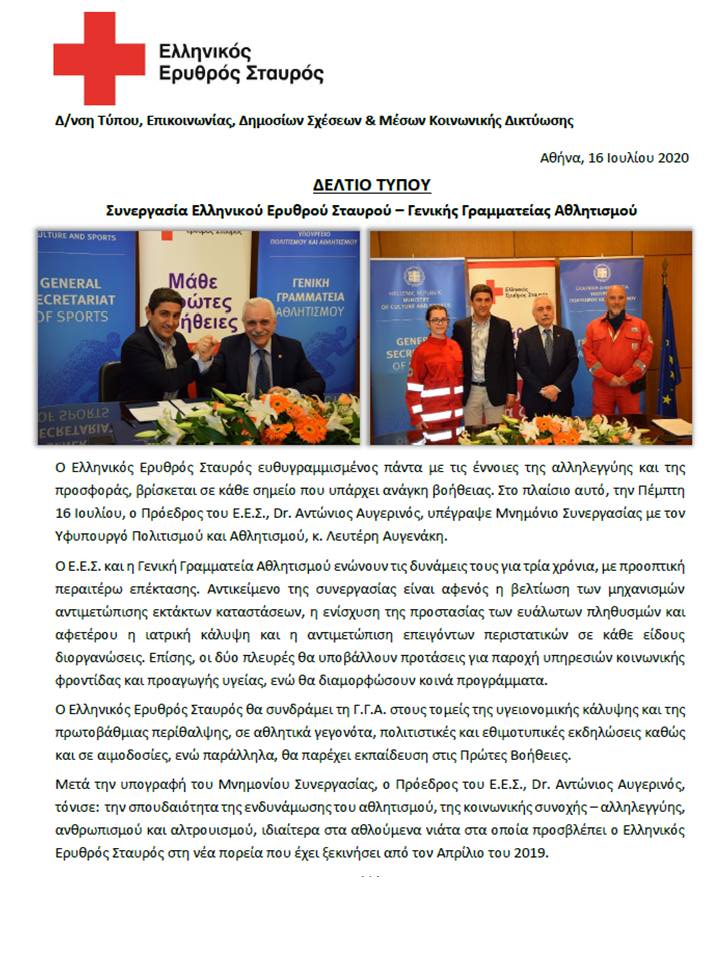ΑΘΛΗΤΙΚΑ ΚΟΙΝΩΝΙΑ Ο Ελληνικός Ερυθρός Σταυρός υπέγραψε Μνημόνιο Συνεργασίας με τον Υφ.Πολιτισμού και Αθλητισμού 17/07/2020 10:438 SHARE …