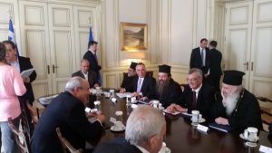 Η συζήτηση ξεκίνησε στις 12 το μεσημέρι για να ολοκληρωθεί λίγο μετά τις 4, παρουσία του Πρωθυπουργού, των Δημάρχων των νησιών Κω, Λέρου, Λέσβου, Χίου, Σάμου και τους Μητροπολίτες αυτών, του Αρχιεπισκόπου Ιερώνυμου, επίσης των Περιφερειαρχων Βορείου και Νοτίου Αγαίου (τον κ. Χατζημάρκο εκπροσώπησε ο Αντιπεριφερειαρχης κ.Ζαννετίδης) , αρκετών βουλευτών του ΣΥΡΙΖΑ που πολιτεύονται στα παραπάνω νησιά (ανάμεσα τους κύριοι Γάκης, Καματερός και Σαντορινιός) και των μελών της κυβέρνησης: Κουρουμπλή, Φλαμπουράρη, Γεροβασίλη, T.Κουίκ.