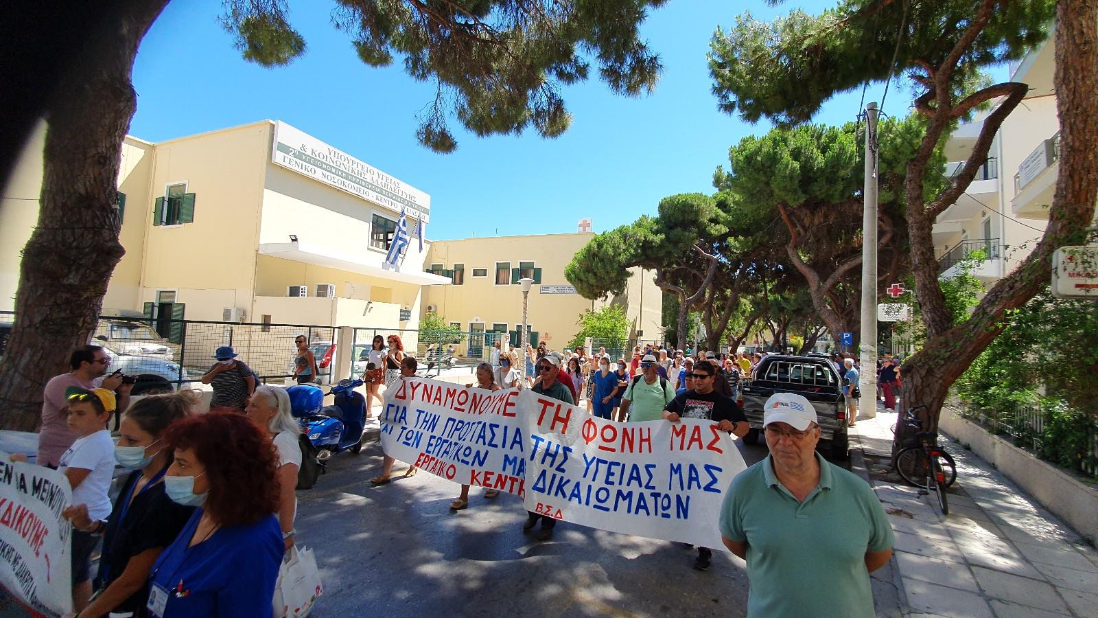 Στην κινητοποίηση αναδείχθηκαν για άλλη μια φορά οι τραγικές ελλείψεις στις δομές υγείας του νησιού σε ιατρικό, νοσηλευτικό προσωπικό, αλλά και σε τεχνολογικό ιατρικό εξοπλισμό.