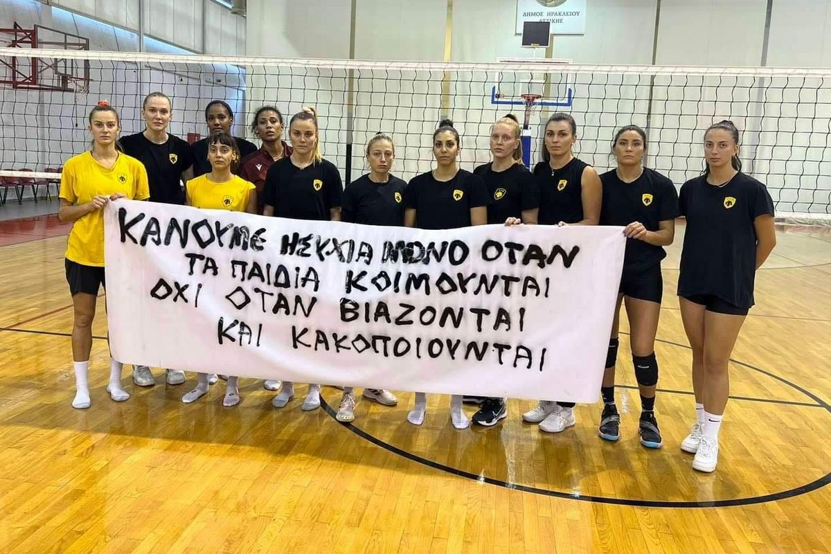 ΑΕΚ βόλεϊ γυναικών: Το συγκλονιστικό πανό της Ένωσης για την παιδική κακοποίηση 15/10/2022 ΚΟΙΝΩΝΙΑ22 SHARE Οι αθλήτριες της γυναικείας ομάδας βόλεϊ της ΑΕΚ έστειλαν το δικό τους μήνυμα για την υπόθεση της 12χρονης κοπέλας στον READ MORE