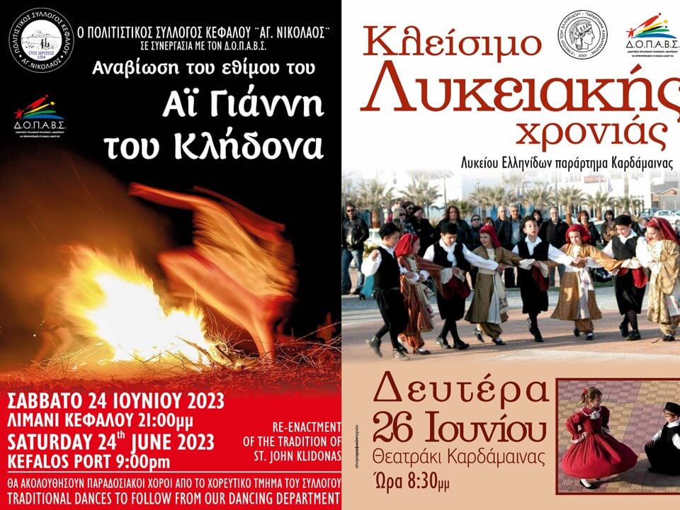 ΔΟΠΑΒΣ: Στην Κέφαλο η αναβίωση του Εθίμου του Άι Γιάννη του Κλήδονα και “Κλείσιμο της λυκειακής χρονιάς” στην Καρδάμαινα 23/06/2023 ΠΟΛΙΤΙΣΜΟΣ0 SHARE Ο Πολιτιστικός Σύλλογος Κεφάλου «Άγιος Νικόλαος» με την στήριξη του ΔΟΠΑΒΣ και της Κοινότητας Κέφαλου READ MORE