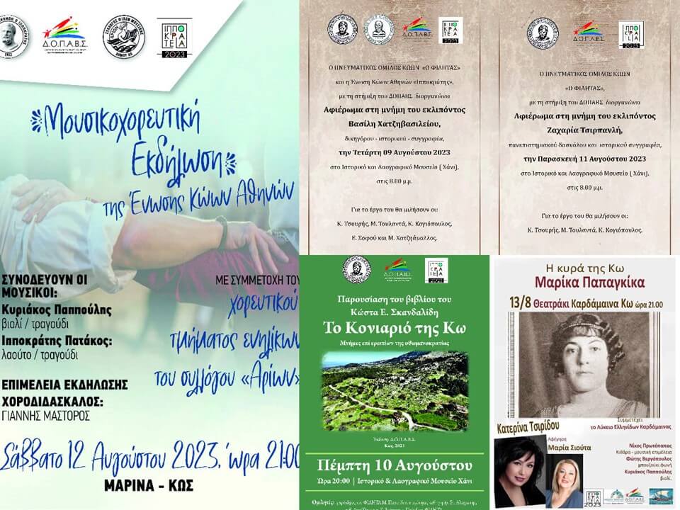 Oι πολιτιστικές εκδηλώσεις του νησιού, μέχρι τις 13 Αυγούστου, με ένα κλικ 08/08/2023 ΠΟΛΙΤΙΣΜΟΣ1 SHARE Αφιέρωμα στη μνήμη του εκλιπόντος Βασίλη Χατζηβασιλείου δικηγόρου- ιστορικού- συγγραφέα διοργανώνει READ MORE