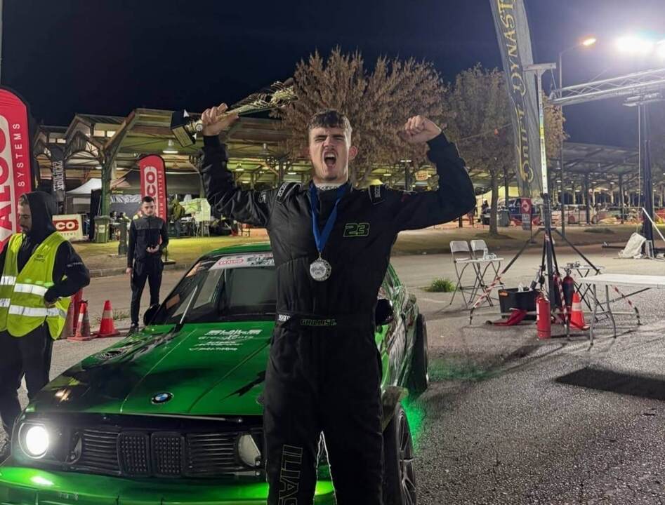 Στο ψηλότερο σκαλί του βάθρου ο Ηλίας Γρύλλης με το BMW E-30 στο "Super Drift Race"