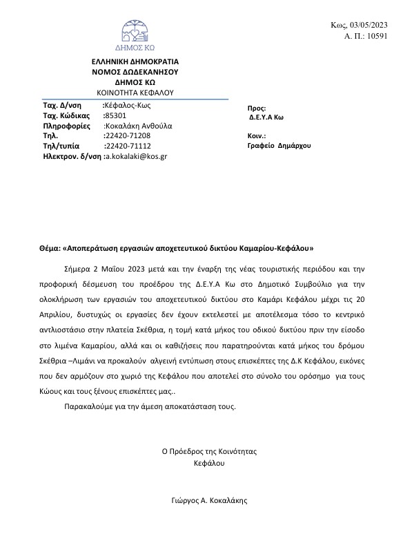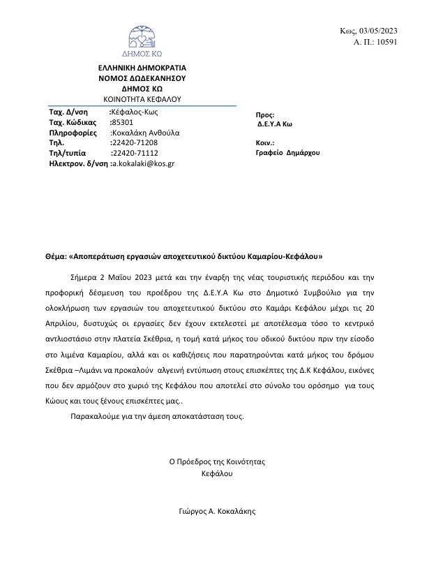 Ο Δήμαρχος Κω, λόγω σοβαρότητας της κατάστασης που έχει διαμορφωθεί, με
