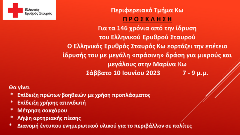 Επέτειος 146 ετών του Ελληνικού Ερυθρού Σταυρού – Η δράση του Περιφερειακού τμήματος Κω
