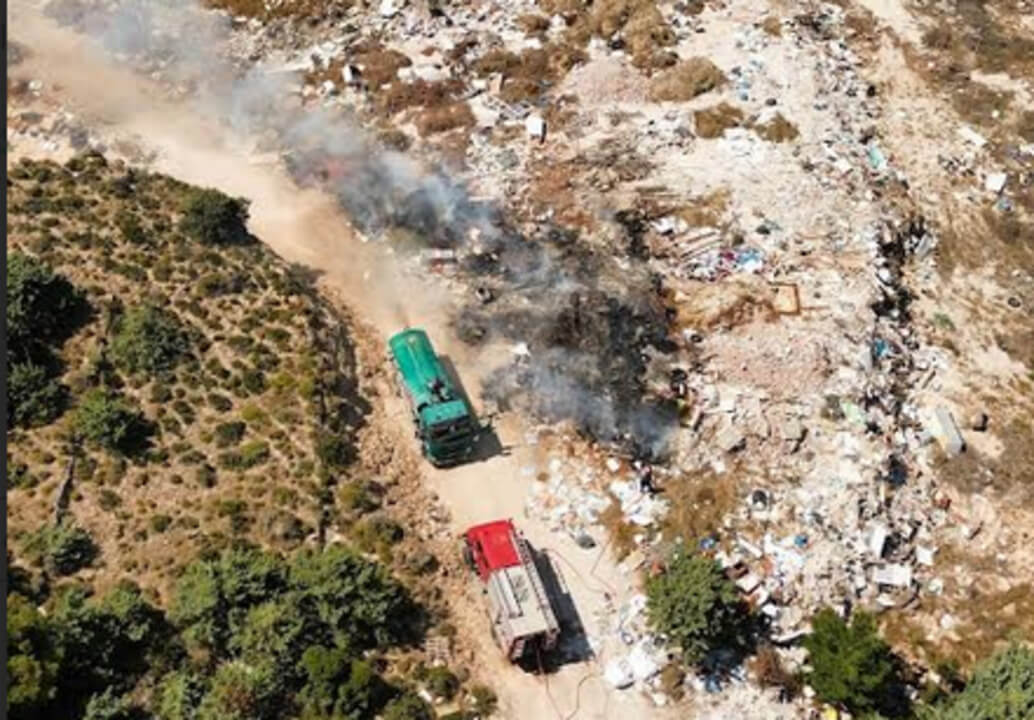 κατάσταση με την παράνομη χωματερή στη Κέφαλο που σήμερα έπιασε