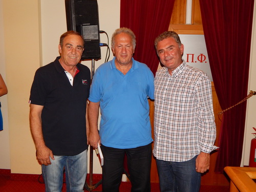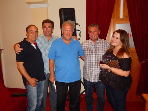 Στη φώτο: Στο ταξίδι του τον συνοδεύει η κόρη του Χριστίνα, μαζί του ο κ.Κ.Σκανδαλίδης, o οικοδεσπότης κ.Σπ.Κλάδης, και ένας από τους μεγάλους του ελληνικού ποδοσφαίρου, ποδοσφαιριστής της “χρυσής” Λάρισας της δεκαετίας του 80 (Κυπελλούχος το 1985 και Πρωταθλήτρια το 1988), ο κ.Γ.Βαλαώρας.