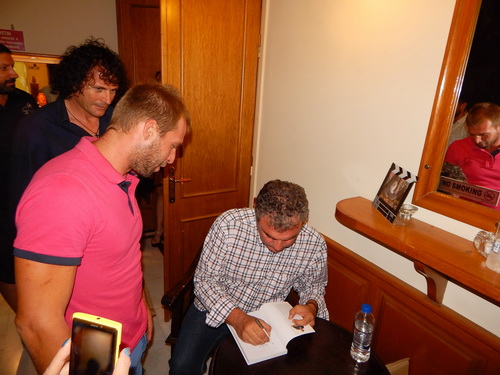 Λίγες ώρες μετά τον “αποχαιρετισμό” στον Γιάννη Ιωαννίδη, έλαβε χώρα στον Ορφέα, η εκδήλωση που διοργάνωσε ο κ.Σπύρος Κλάδης και το βιβλιοπωλείο “Έκφραση”, με έναν από τους σημαντικότερους Έλληνες Αθλητικογράφους, παγκοσμίου φήμης, άξιος (κατά την προσωπική μας άποψη), συνεχιστής του “μεγάλου” Γιάννη Διακογιάννη, αστείρευτος σε εμπειρίες εντός κι εκτός των γηπέδων, όπως και σε επίπεδο γνώσεων.