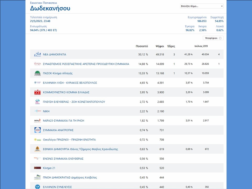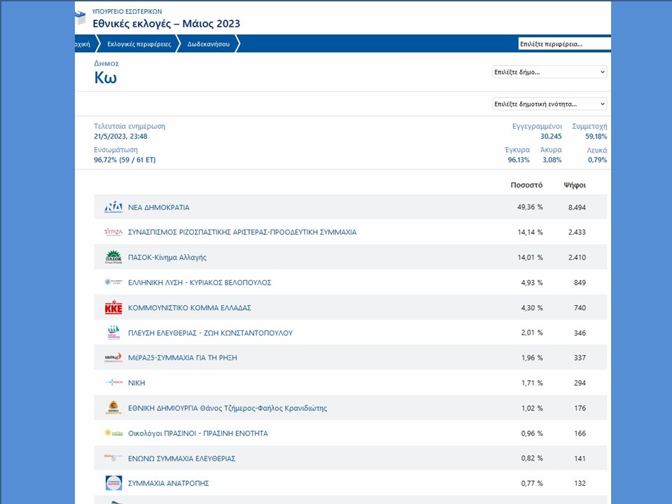 Ο εκλογικός “χάρτης” για την Κω και τα Δωδεκάνησα λίγο πριν την ολοκλήρωση της καταμέτρησης
