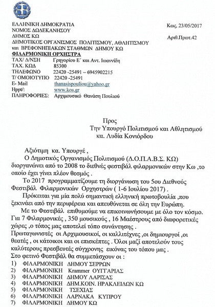 "Απάντηση" στα όσα υποστήριξε τις τελευταίες ημέρες, η τέως Πρόεδρος του ΔΟΠΑΒΣ κ.Χατζηχριστοφή από τον Αρχιμουσικό κ.Πουλιού