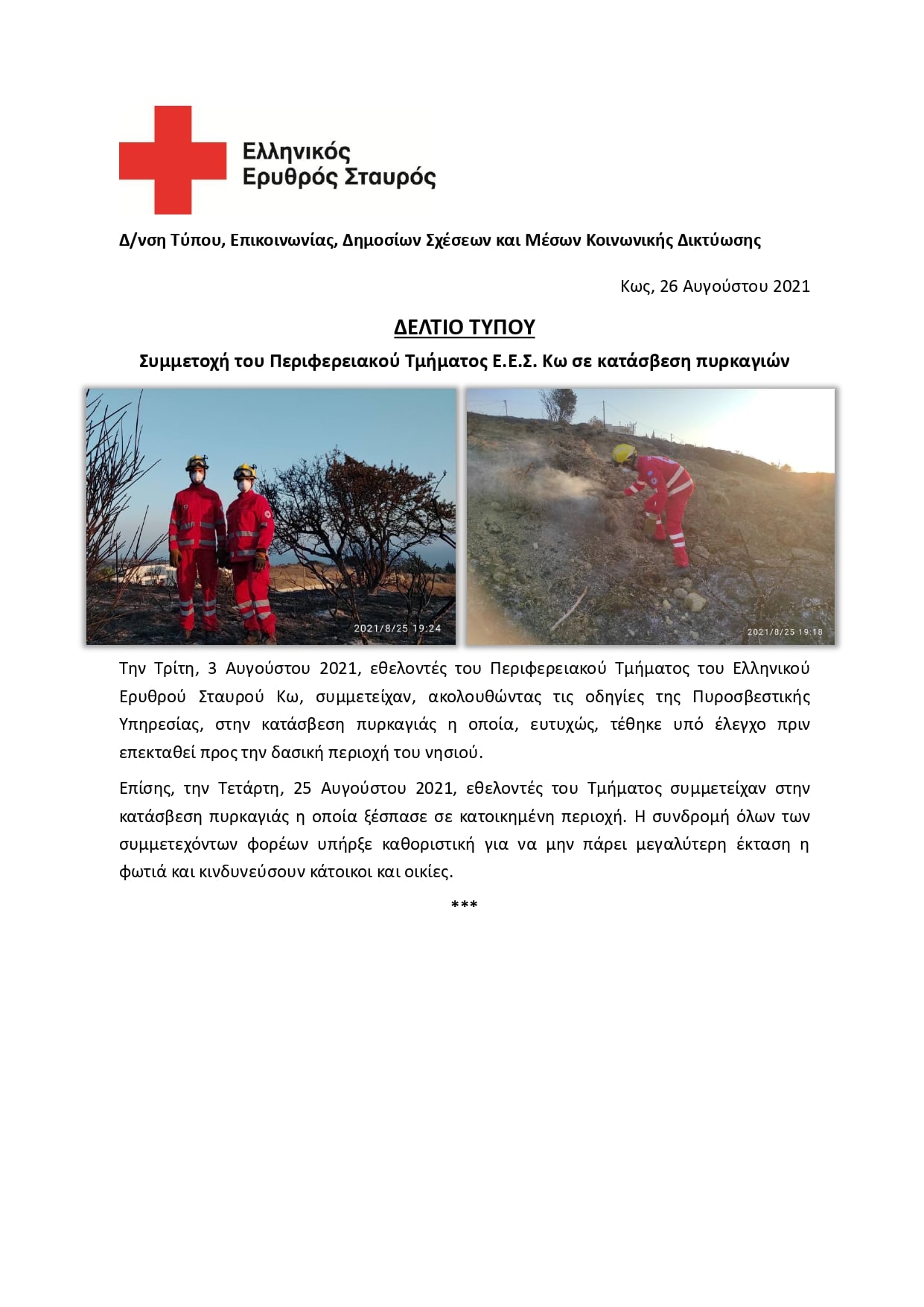 Στις κατασβέσεις των 2 πυρκαγιών του Αυγούστου συμμετείχαν και εθελοντές του Ελληνικού Ερυθρού Σταυρού περιφερειακό τμήμα Κω [ΦΩΤΟ]